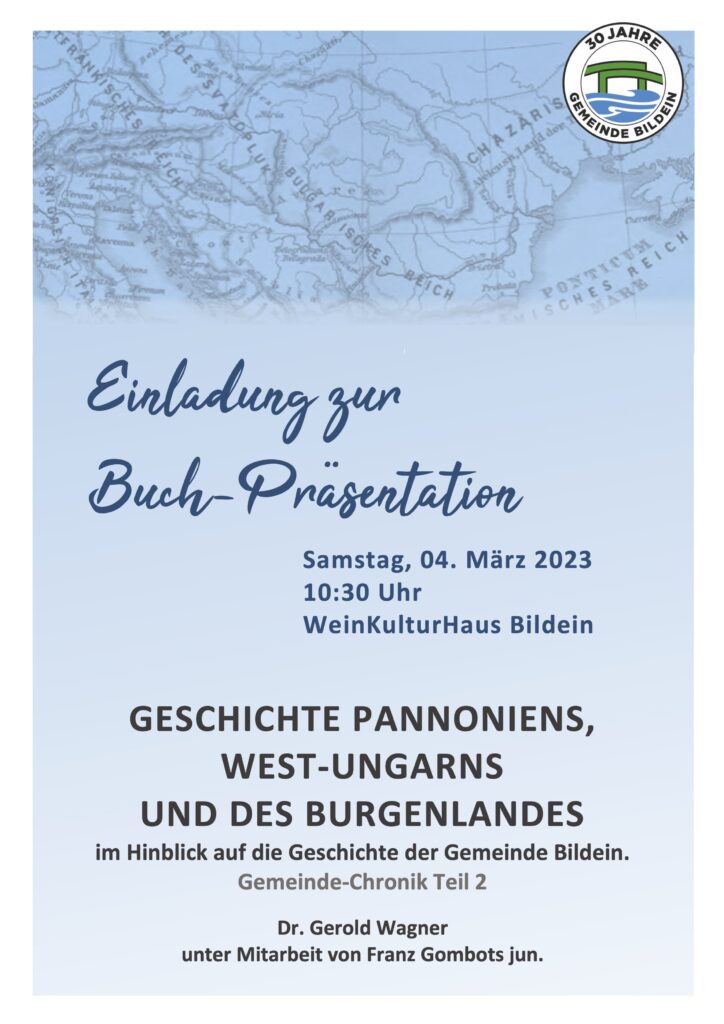 Der Bildeiner Dr. Gerold Wagner hat unter Mitarbeit von Franz Gombots jun. im Jahr des 30-jährigen Bestehens der Gemeinde Bildein ein Buch verfasst, dass wir als 2. Band unserer Gemeinde-Chronik auflegen: