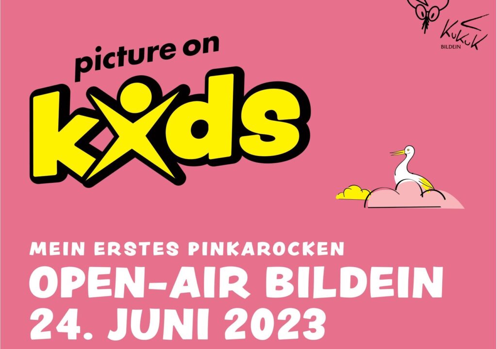 ein Herzensprojekt feiert dieses Jahr Premiere, das schon länger in der Schublade unseres Veranstalter:innenteams liegt: Ein Festival für Kinder! Und wer das picture on festival kennt, der weiß um was es hier geht: Ums gemeinsame (pinka)rocken! Beim Pilotversuch picture on kids sind Ende Juni im Bildeiner Festivalgelände erstmals die Kinder die ganz Großen und können ein eigens für sie auf die Beine gestelltes (kleines) Musikfestival erleben.